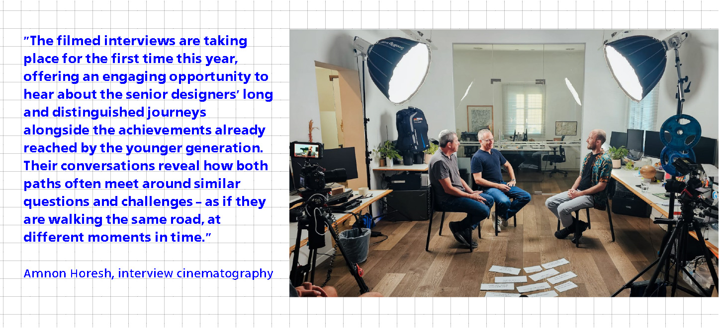 Amnon Horesh, who has been accompanying the Edmond de Rothschild Design Award for five years, was responsible for filming and editing the interviews. “It was an exciting opportunity to see and hear both generations,” he says. “This year, for the first time, filmed interviews between emerging and senior designers took place. It was fascinating and moving to hear about the long, respected journeys of the senior designers alongside the achievements the emerging designers have already accomplished. Listening to them discuss how their paths often intersect in similar challenges and questions – like walking the same path, just at different times.”